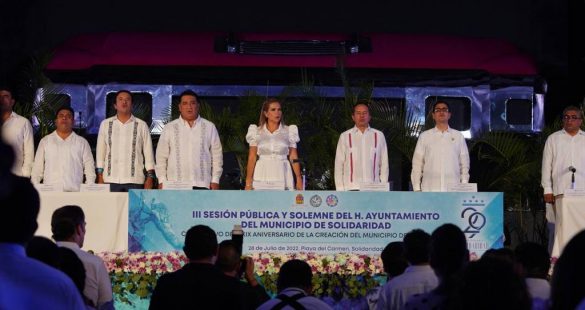 Durante su mensaje el Gobernador, destacó que Solidaridad surge como un conglomerado urbano que atraía una de las migraciones más altas del país en los últimos años, con gente de todo el país, y donde se propuso una urbanización ordenada y segura, que hoy son realidades y el trabajo es la energía que da origen a este destino turístico, vanguardista y competitivo que hoy disfrutamos.