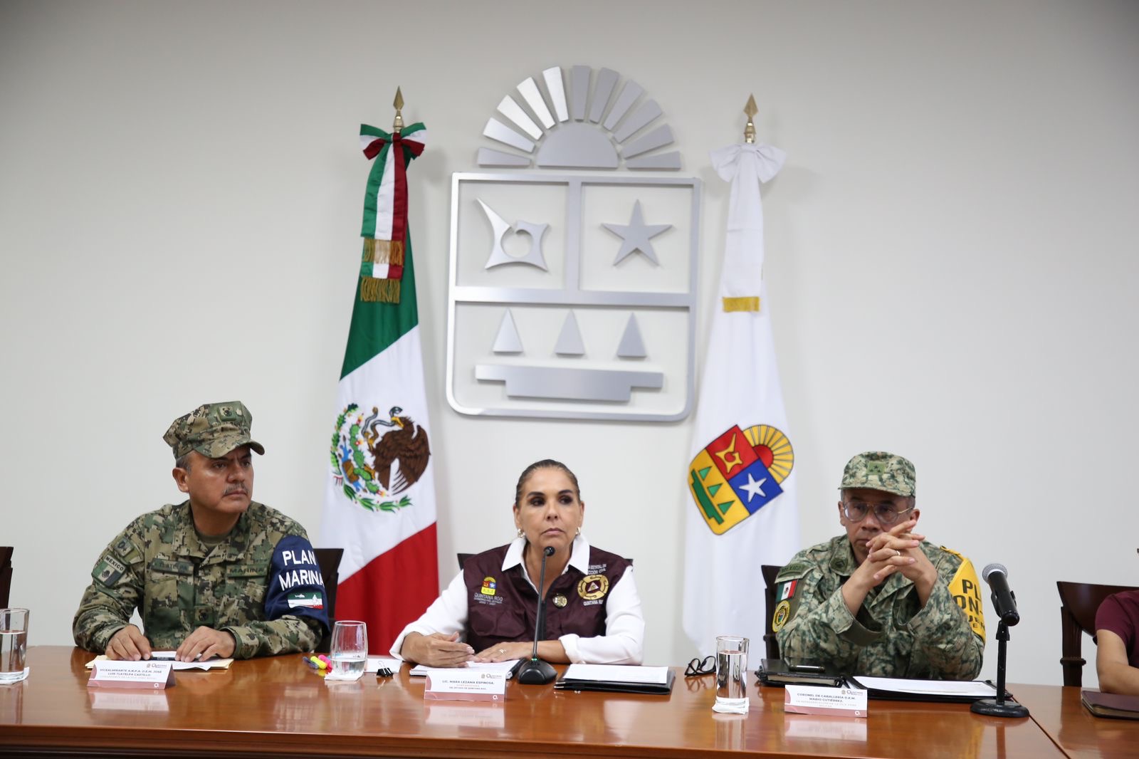 Mara Lezama destacó el trabajo en unidad y coordinado del gabinete estatal, autoridades municipales, fuerzas de seguridad y en especial al Ejército Mexicano, a la Marina y Guardia Nacional que prestaron apoyo a la población civil a través del Plan DNIII E y el Plan Marina.