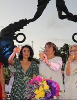 Laura Beristain delante de todos le preguntó a Karla si quería casarse con ella, obteniendo una respuesta favorable y los aplausos de los asistentes a la boda colectiva realizada el pasado 14 febrero frente al Mar Caribe.