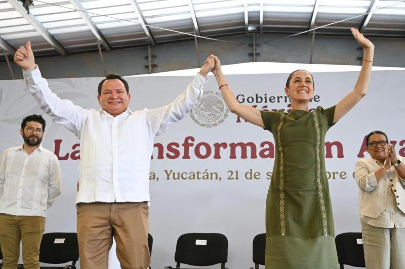 Por su parte, el Gobernador Joaquín Díaz Mena expresó el orgullo de recibir a la primera Presidenta de México en Yucatán, subrayando el carácter histórico de este momento para la República.
