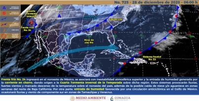 Tabasco, 28 diciembre; poderycrítica.-El Instituto de Protección Civil del Estado de Tabasco (IPCET), informó que la ligera entrada de humedad del Golfo de México, limitada por una circulación anticiclónica, favorecerá lloviznas aisladas de 0.1 a 5 milímetros, principalmente en La Chontalpa y Sierra.