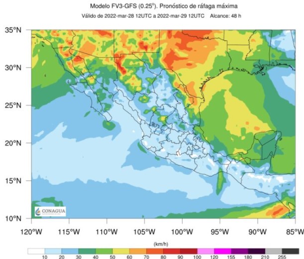 La temperatura en el Estado oscilará de 30 a 35 grados Centígrados, con una sensación térmica de 40 grados; el viento presentará rachas de 50 a 60 km/h; recomiendan a la navegación menor tomar precauciones.