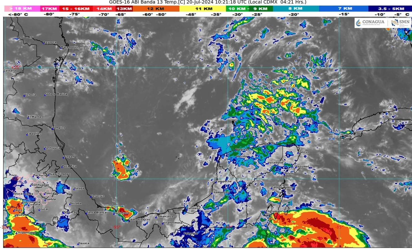 Durante la tarde, cielo nublado con lluvias puntuales fuertes acompañadas con descargas eléctricas en Campeche, Yucatán y Quintana Roo; las cuales podrían reducir la visibilidad y ocasionar encharcamientos o inundaciones. En la tarde, ambiente cálido a caluroso.