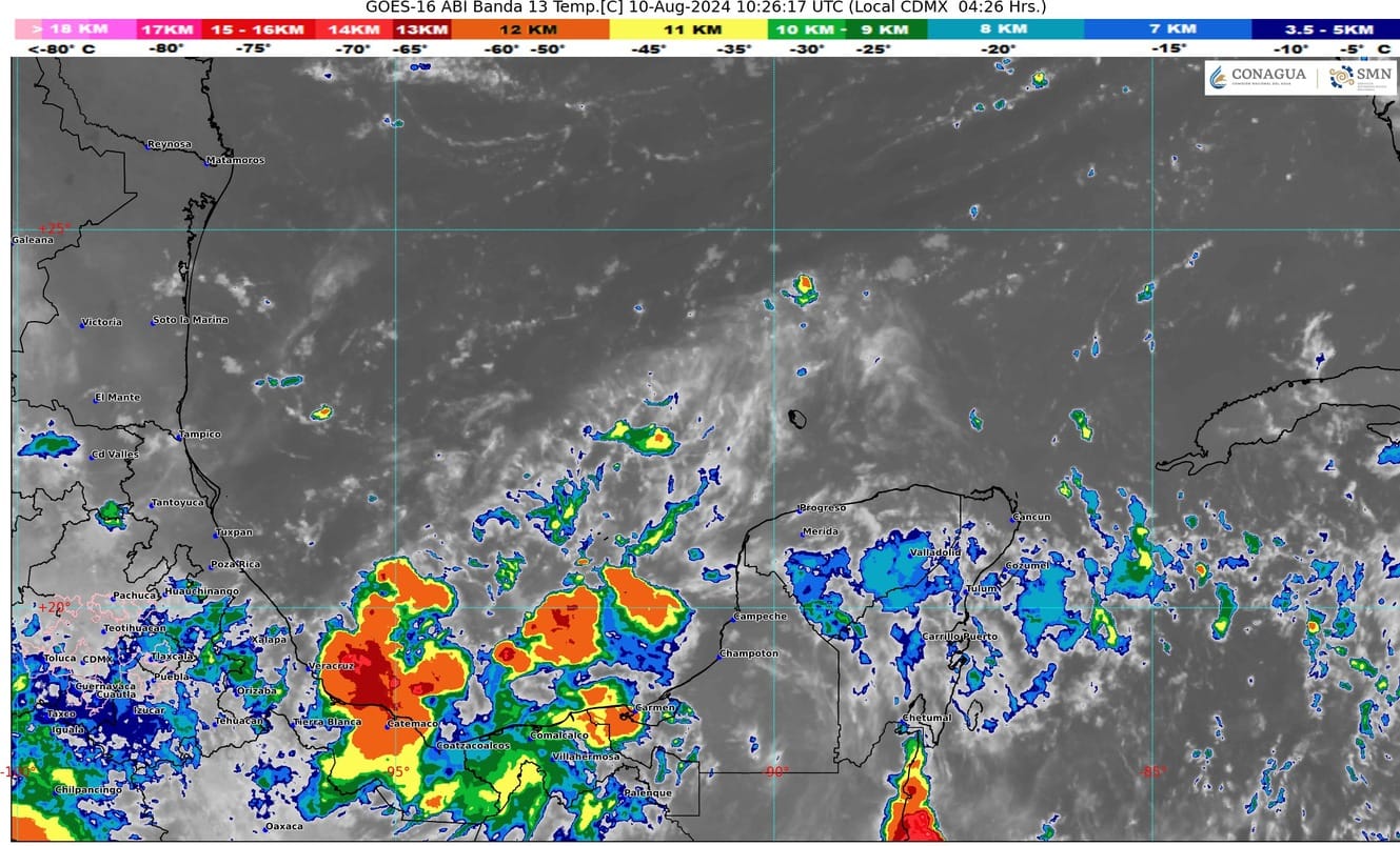 PODER Y CRÍTICA | REDACCIÓN | Para este sábado 10 de agosto, el Servicio Meteorológico Nacional (SMN) pronostica cielo medio nublado y ambiente templado por la mañana. Durante la tarde ambiente cálido a caluroso, y muy caluroso en el norte de Campeche. Cielo nublado con probabilidad de lluvias puntuales muy fuertes en Campeche, y puntuales fuertes en Yucatán y Quintana Roo.