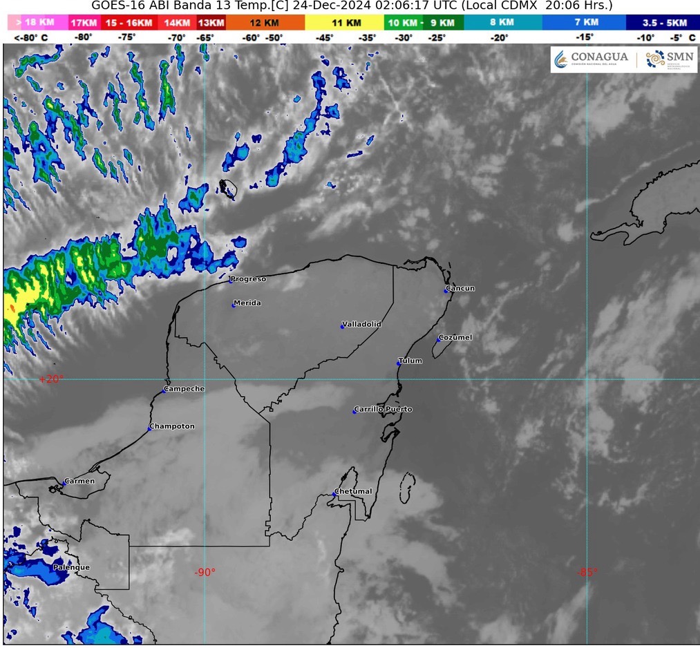 PODER Y CRÍTICA | REDACCIÓN | Para hoy en la Península de Yucatán habrá cielo medio nublado a nublado durante el día, con lluvias aisladas en Yucatán y Quintana Roo, sin lluvia en Campeche. Por la mañana, ambiente fresco en la región y templado en costas; durante la tarde, ambiente cálido. Viento del este y noreste de 10 a 20 km/h con rachas de 30 a 40 km/h.
