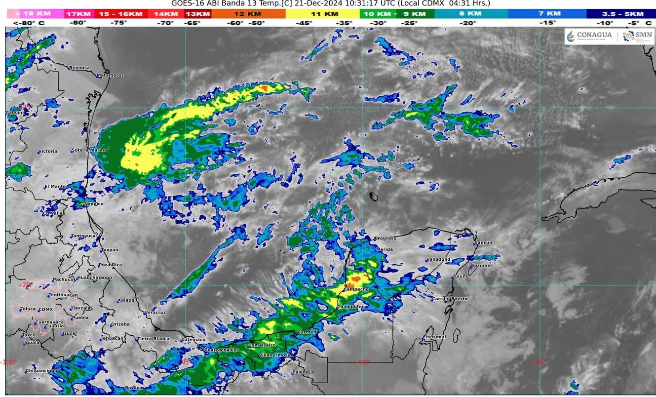 PODER Y CRÍTICA | REDACCIÓN | Para este sábado 21 de diciembre, el Servicio Meteorológico Nacional (SMN) prevé condiciones de cielo parcialmente nublado a medio nublado en el transcurso del día, con probabilidad de chubascos en Campeche, así como lluvias aisladas en Yucatán y Quintana Roo.