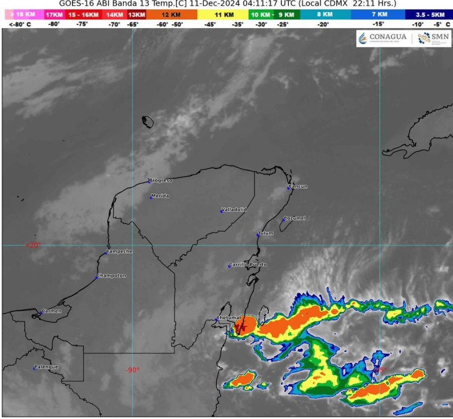 PODER Y CRÍTICA | REDACCIÓN | El Servicio Meteorológico Nacional (SMN) informa que para la Península de Yucatán habrá cielo medio nublado a nublado durante el día; por la mañana, ambiente fresco a templado. Durante la tarde, ambiente cálido, con lluvias muy fuertes a puntuales intensas en Campeche y Quintana Roo, y lluvias puntuales muy fuertes en Yucatán, las cuales podrían ocasionar encharcamientos e inundaciones. Evento de “Norte” de 30 a 50 km/h con rachas de 60 a 80 km/h en costas de la península, así como oleaje de 3 a 4 metros de altura en costas de Campeche y oleaje de 2 a 3 metros de altura en costas de Yucatán.