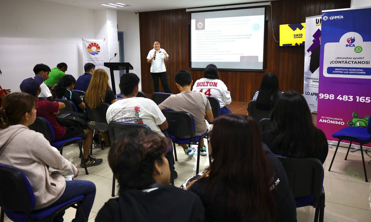 PODER Y CRÍTICA | REDACCIÓN | En el marco del Día Internacional de la Juventud, personal de la Secretaría Municipal de Desarrollo Social y Económico del Ayuntamiento de Benito Juárez, llevó a cabo una plática informativa y brigada integral de salud en la universidad UNID campus Cancún, con el objetivo de fomentar la prevención e importancia de la salud mental entre la juventud cancunense.