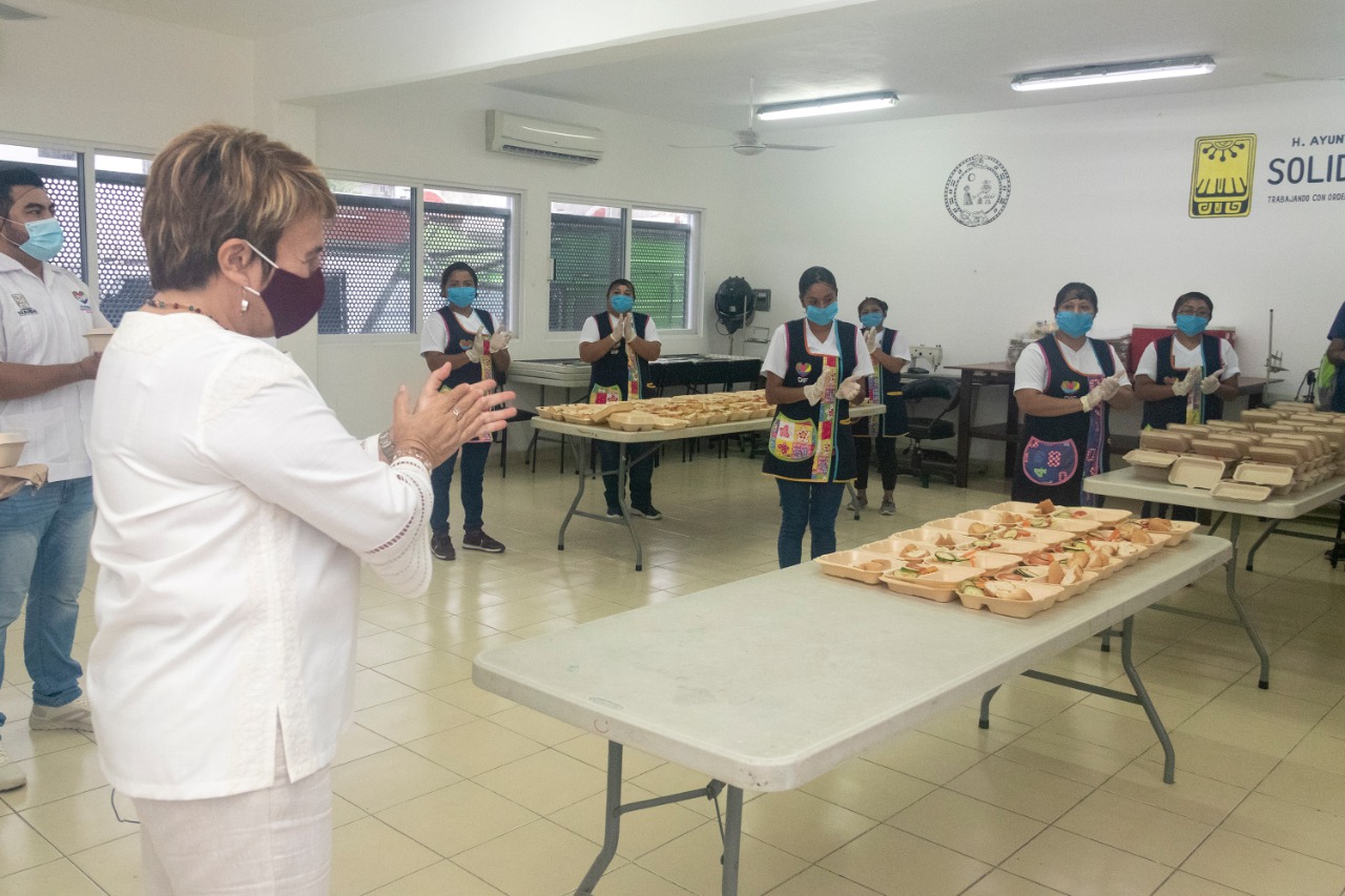 La directora general del DIF Municipal, Mirella Díaz Aguilar informó que el horario de atención en los cuatro Comedores Solidarios que se ubican en Puerto Aventuras, CDC 28 de Julio, Enlace DIF Villas del Sol y en CADI de la colonia Nicté ha, es a partir de las 12 del día, de lunes a viernes; todo ello conservando los protocolos de salud: sana distancia, limpieza de manos y uso obligatorio de cubrebocas entre los usuarios.
