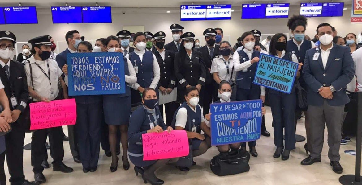 Este martes, miles empleados de Interjet protestaron en Ciudad de México y Cancún por la falta de pago de la empresa.