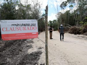 Chetumal, Q. Roo, Lunes 29 de Marzo de 2021, poderycrítica.- Personal de la Procuraduría Federal de Protección al Ambiente (PROFEPA) clausuró este lunes el camino al terno al balneario “El Chorrito”, que realizaba el comisariado Ejidal de Juan Sarabia, Marco Antonio Jiménez Potenciano.