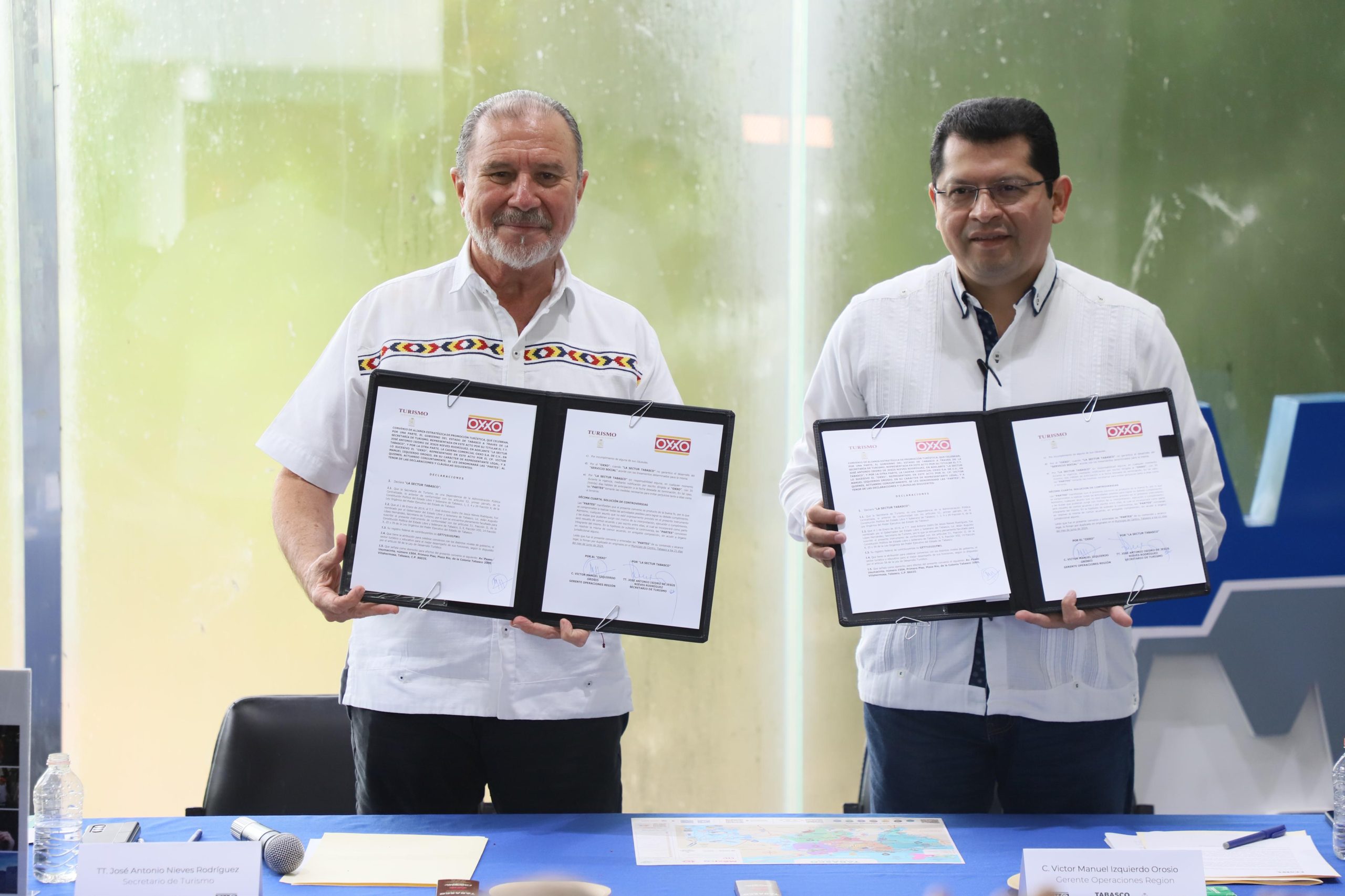 El convenio de colaboración fue firmado por el titular de la dependencia pública, José Antonio Nieves Rodríguez y el gerente de Operaciones de la Región Sureste de OXXO, Víctor Manuel Izquierdo Orosio, quien informó que en Tabasco cuenta con 200 tiendas mientras que en la Península de Yucatán, con más de 900 tiendas de conveniencia.
