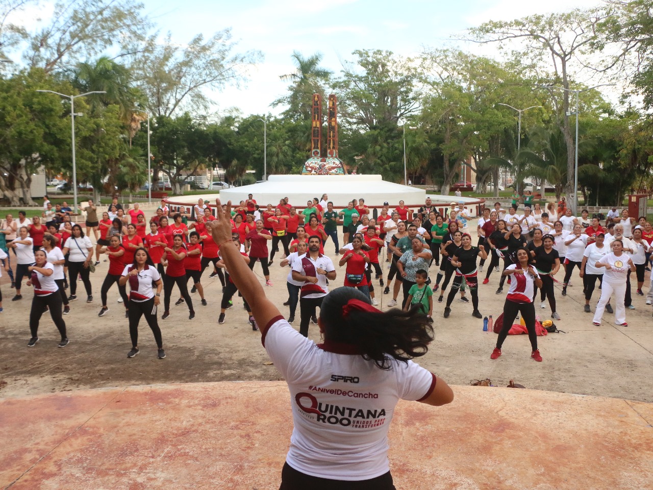 Esta es una de las primeras clases masivas de activación física que se tiene programado y para esta ocasión se realizó teniendo como escenario el “Parque de los Caimanes”, que se ubica frente de la Catedral de Chetumal, y en donde con mucho entusiasmo, se realizaron diversos estilos de baile deportivo, donde además de poner buen ambiente se ejercitaron.