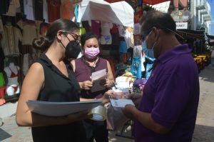 En el volanteó que abarcó el primer cuadro de la isla, participaron la Secretaria General de la comuna, Miriam Trejo León y la dirección de Prevención del Delito de la Dirección General de Seguridad Pública y Tránsito Municipal.
