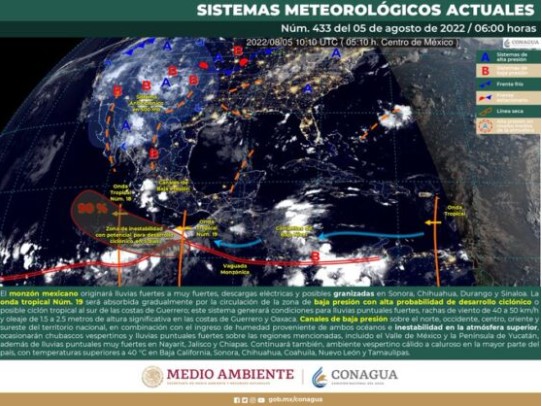 La onda tropical Núm. 19 será absorbida gradualmente por la circulación de la zona de baja presión con alta probabilidad de desarrollo ciclónico o posible ciclón tropical al sur de las costas de Guerrero.