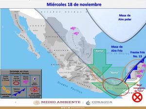 La Coordinación Estatal de Protección Civil informó que también se espera un descenso en la temperatura ocasionando temperaturas frescas (heladez) y viento.
