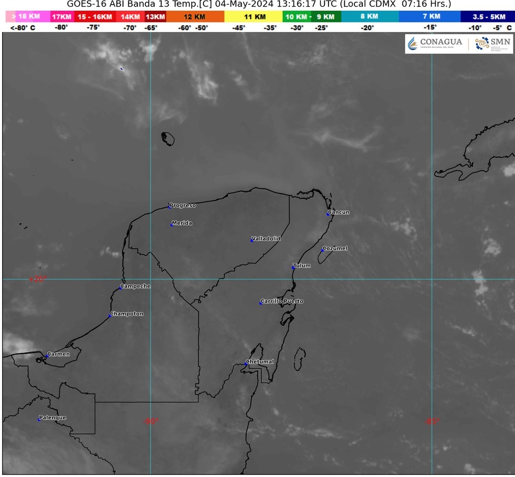 Para este sábado 04 de mayo, el Servicio Meteorológico Nacional pronostica cielo medio nublado a nublado con lluvias aisladas en Quintana Roo. Cielo parcialmente nublado y sin lluvia en Campeche y Yucatán.