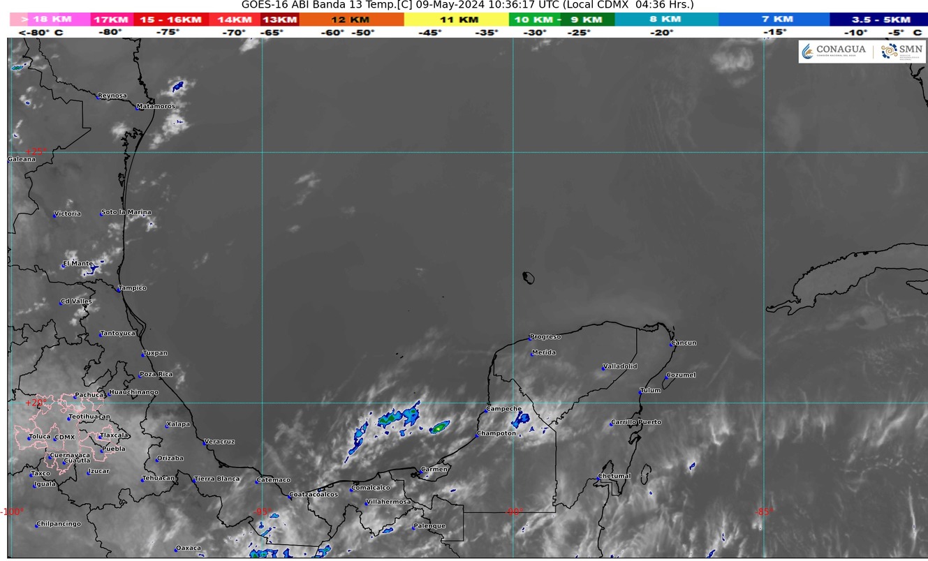 PODER Y CRÍTICA | REDACCIÓN | Para este jueves 9 de mayo, el Servicio Meteorológico Nacional (SMN) pronostica cielo medio nublado durante el día con probabilidad de lluvias aisladas en la Península de Yucatán.