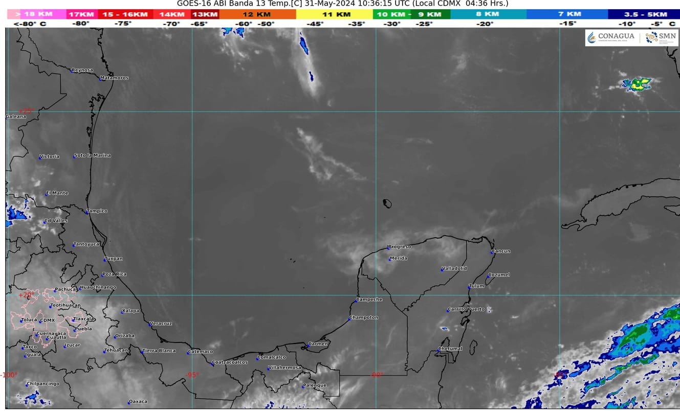 PODER Y CRÍTICA | REDACCIÓN | Para este viernes 31 de mayo, el Servicio Meteorológico Nacional (SMN) prevé cielo medio nublado con probabilidad de lluvias y chubascos dispersos acompañados con descargas eléctricas en la Península de Yucatán.