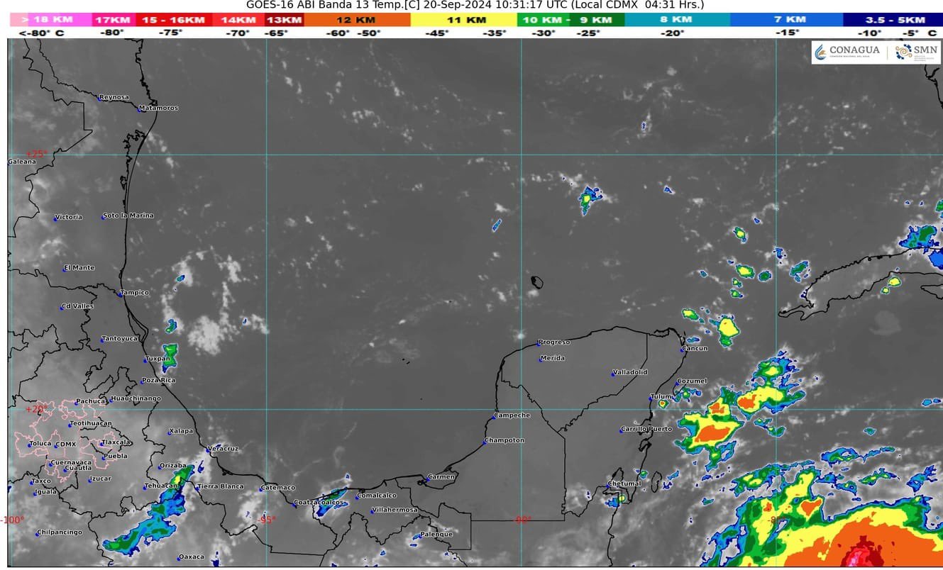 PODER Y CRÍTICA | REDACCIÓN | Para este viernes 20 de septiembre, el Servicio Meteorológico Nacional (SMN) prevé cielo medio nublado con ambiente templado, y nublado con lluvias aisladas en el norte de Quintana Roo. Durante la tarde, ambiente cálido a caluroso.