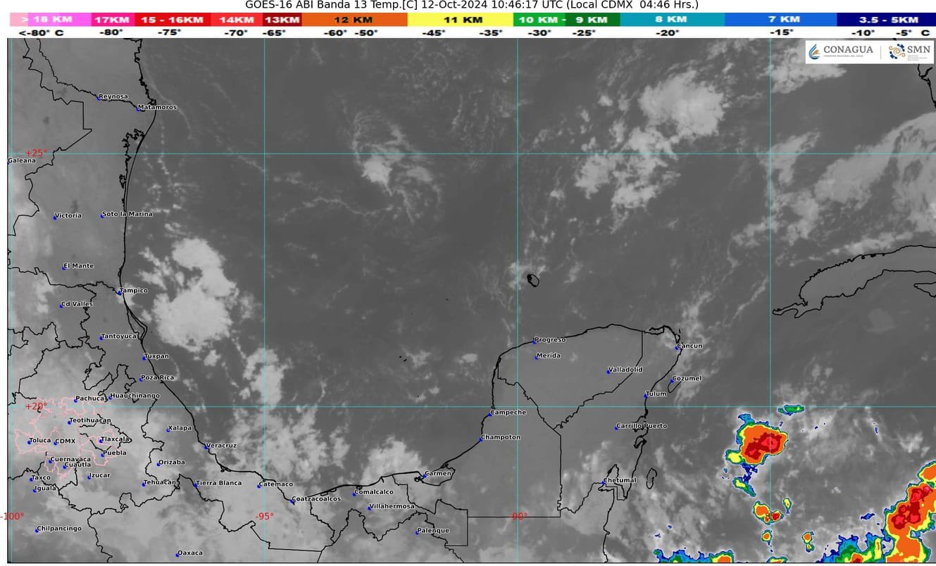 Durante la tarde, el Servicio Meteorológico Nacional (SMN) pronostica ambiente cálido a caluroso, con lluvias puntuales fuertes en Quintana Roo, las cuales podrían generar encharcamientos e inundaciones, asimismo probabilidad de chubascos en zonas de Campeche y Yucatán.