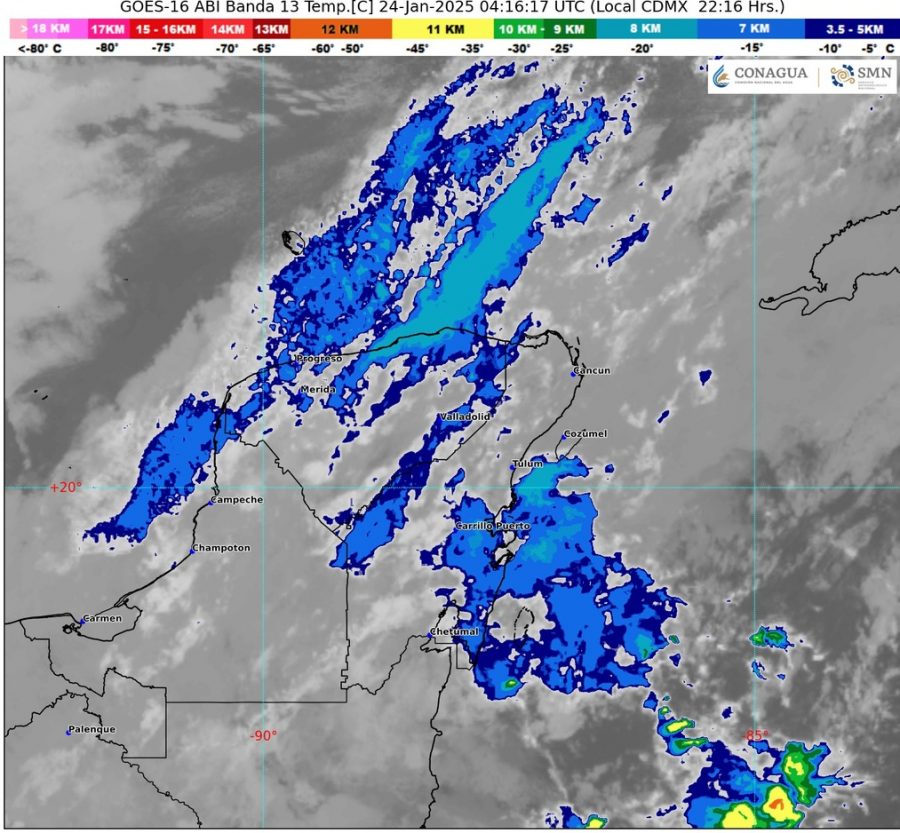 Agrega que por la mañana el ambiente será fresco, pero durante la tarde el ambiente será templado. Evento de “Norte” con viento de 20 a 30 km/h en la región, con rachas de 40 a 60 km/h en Campeche, Yucatán Quintana Roo, y oleaje de 1 a 3 metros de altura en las costas de la península de Yucatán.