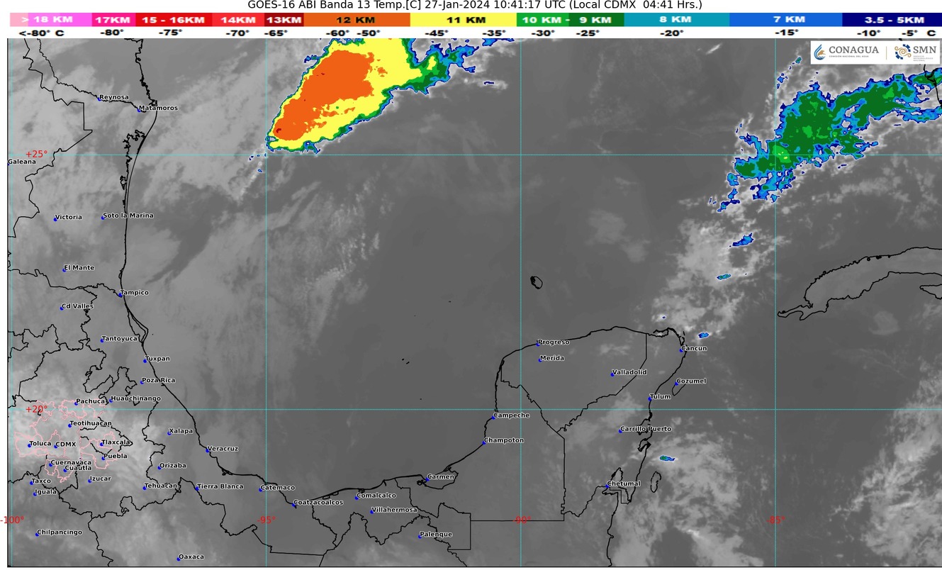 El Sistema Meteorológico Nacional (SMN) prevé lluvias fuertes con puntuales muy fuertes y posibles descargas eléctricas en Campeche, Yucatán y Quintana Roo, mismas que podrían originar encharcamientos e inundaciones.