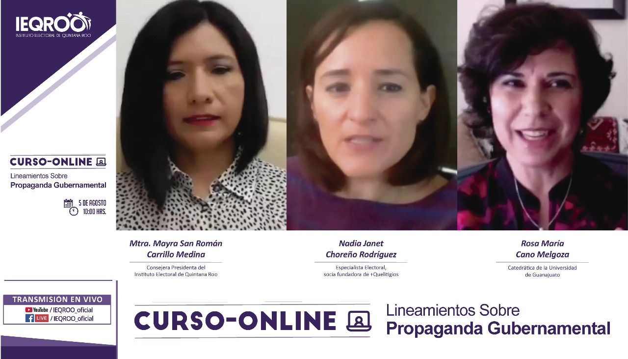 Chetumal, Q. Roo, Miércoles 05 de Agosto de 2020, poderycrítica. – La propaganda gubernamental en la vida política institucional del país se puede englobar en dos rubros, aquella que regula su contenido y temporalidad, así como, las reglas relacionadas con la actuación de los servidores públicos para que actúen con neutralidad, es decir, que los recursos que están bajo su administración sean usados de manera imparcial, coincidieron en señalar Nadia Janet Choreño Rodríguez, especialista electoral y socia fundadora de +Quelitigios y Rosa María Cano Melgoza, catedrática de la Universidad de Guanajuato, durante el curso-online denominado: “Lineamientos sobre propaganda gubernamental”.
