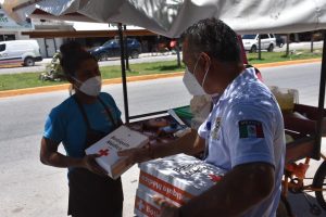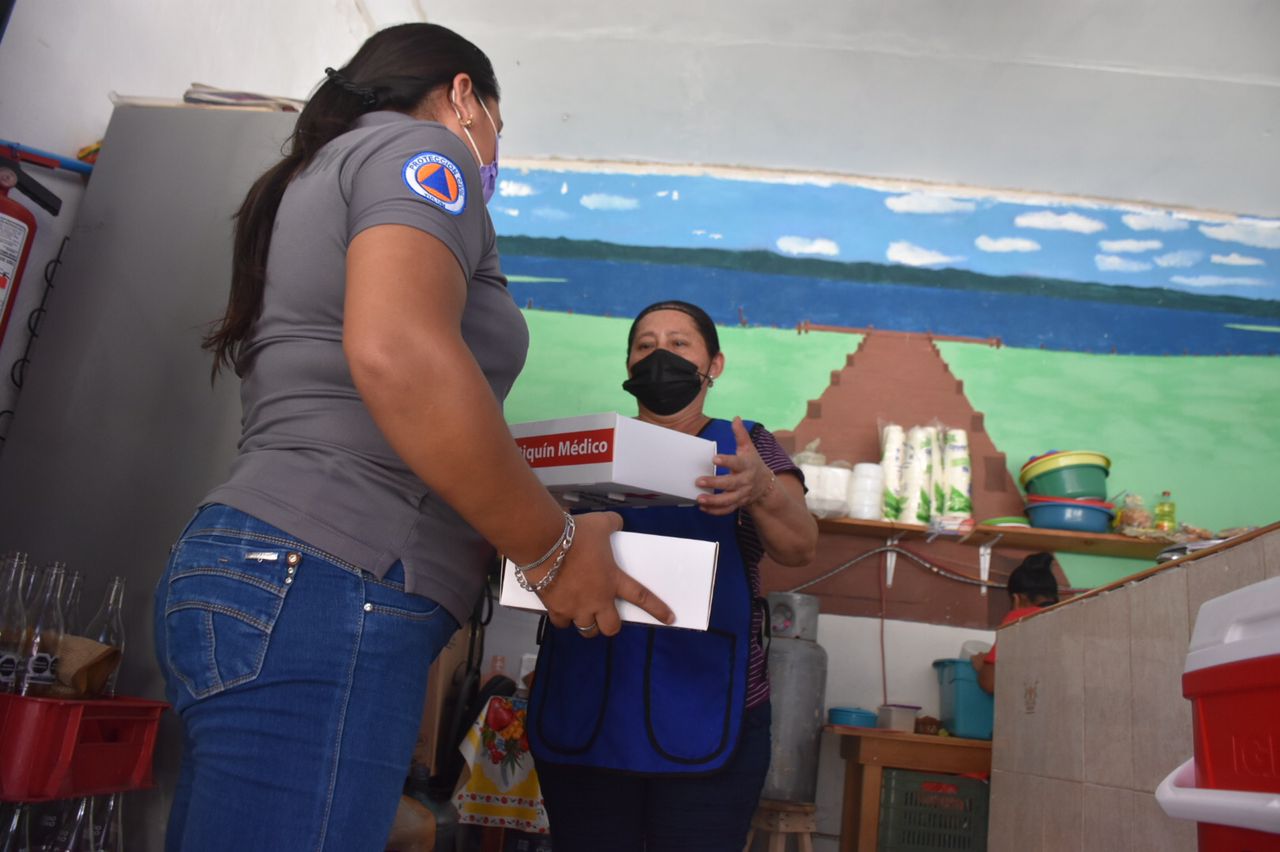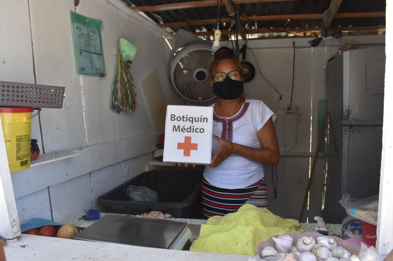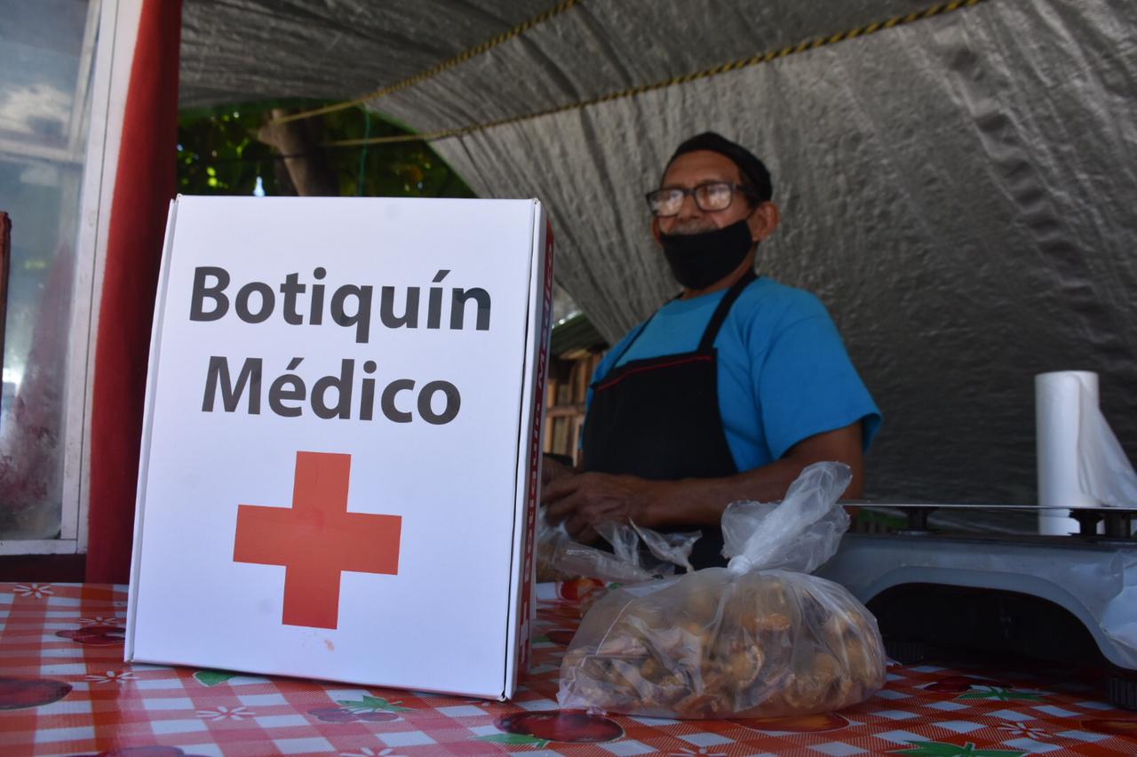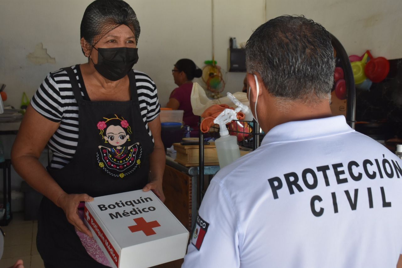 Durante la entrega de botiquines se exhortó a los colaboradores de los comercios a utilizar cobrebocas, mantener la distancia y verificar que los clientes también cumplan con estas medidas para prevenir contagios por Covid-19.