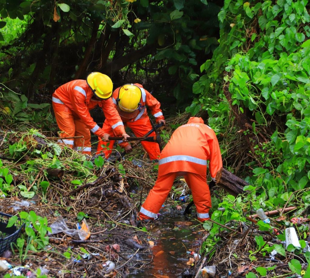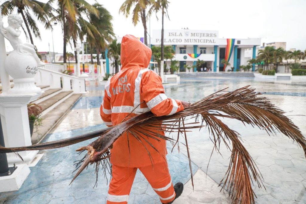 Poder y Crítica | Redacción | Las cuadrillas de Protección Civil y de Servicios Públicos Municipales continúan reforzando los trabajos de limpieza para prevenir encharcamientos ante las intensas lluvias que se han registrado en lsla Mujeres a consecuencia del paso de la Onda Tropical Número 6.
