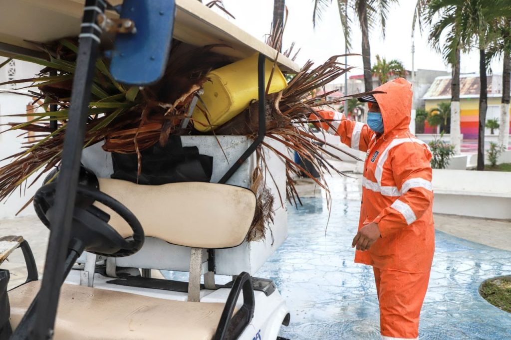 Por su parte, el director general de Servicios Públicos Municipales, Santiago Quiñónez Fernández, agregó que las cuadrillas de Parques y Jardines trabajaron en la limpieza a la orilla de la carretera Sac Bajo, así como también en el barrido de la arena acumulada por las lluvias y se levantaron las ramas en el área del centro.