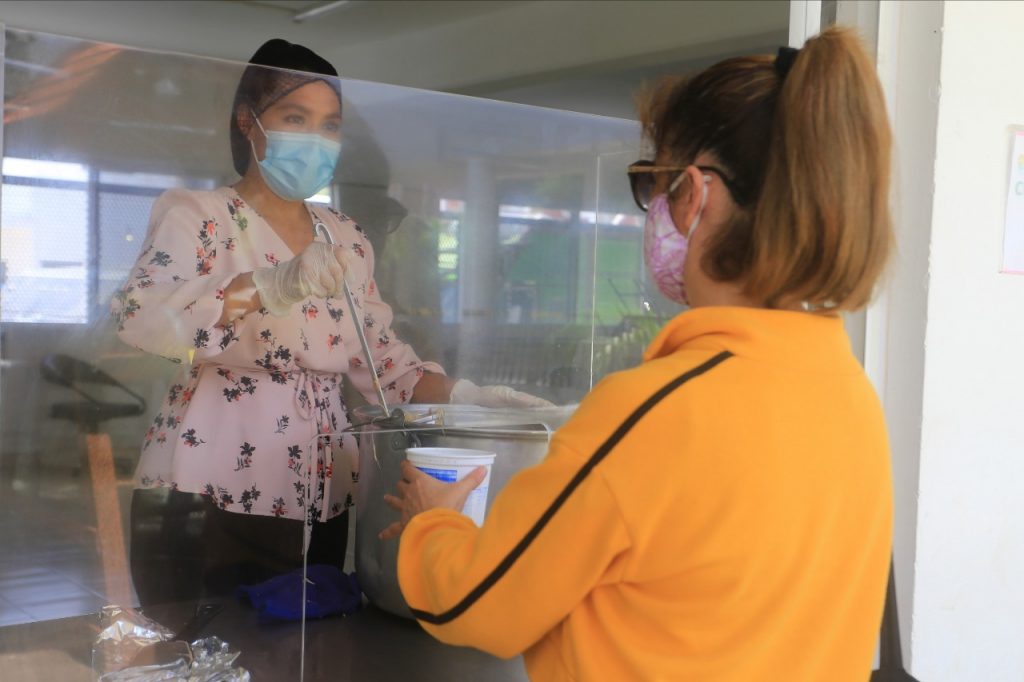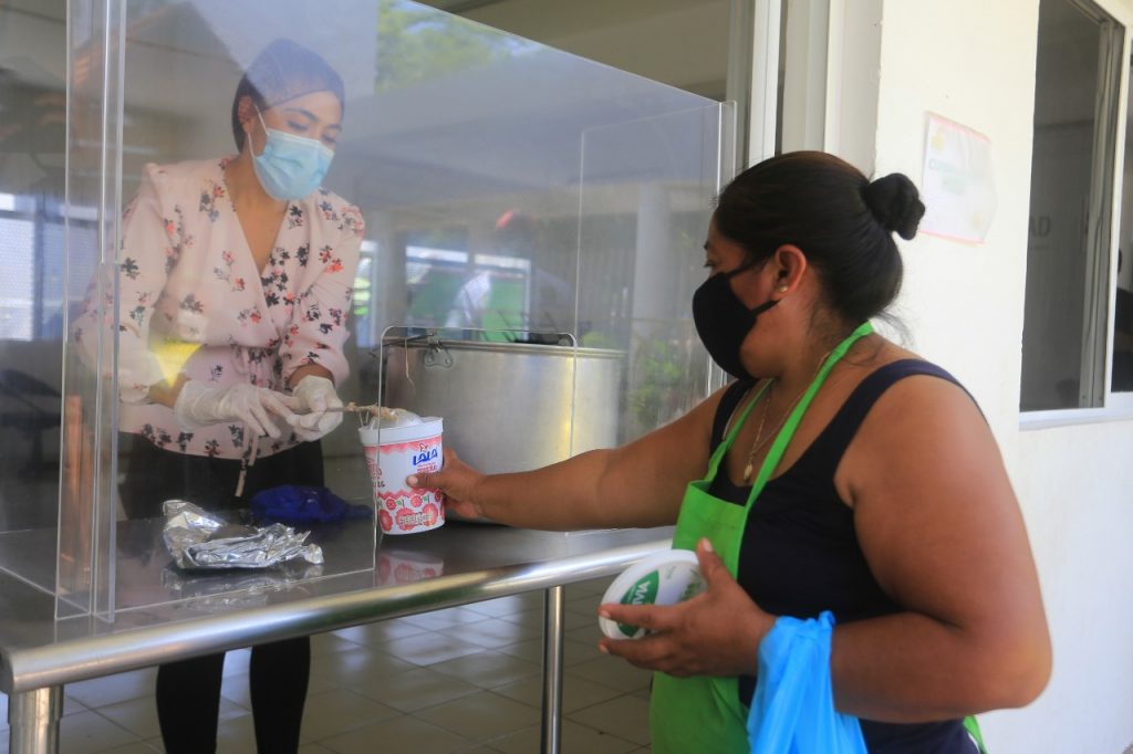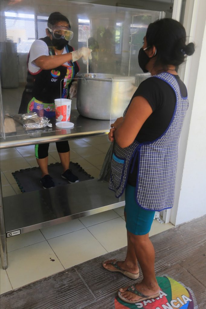 La directora general del DIF Municipal, Mirella Díaz Aguilar informó que, en los Comedores Solidarios, como parte de la Nueva Normalidad, además de la sana distancia, durante la elaboración y entrega de los alimentos, los colaboradores del DIF usan cubrebocas, red para cabello y guantes. Previo al acceso, se cuenta con una estación de sanitización con lavamanos y gel desinfectante.