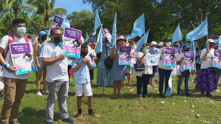 Con pancarta en mano y con consignas como, Sí a la vida, no al aborto, viva la familia más de 250 personas en su mayoría vestidos de azul y rosa, fijaron su posicionamiento para que el marco legal en Quintana Roo no sea modificado en virtud de que existen causales que permiten el aborto legal, que es por mal formación, cuando la vida de la madre está en peligro o violación.