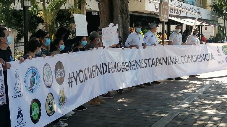 Mérida, Yucatán, Jueves 11 de Noviembre de 2021, poderycrítica.- De manera pacífica, personas de profesión en biología y veterinaria, salieron a las calles del Centro Histórico de Mérida a manifestarse en contra de la iniciativa de Bienestar Animal propuesta por el Senado de la República, puesto que indican que puede generar afectaciones tanto a la fauna como a la misma economía de México y por ende, del estado de Yucatán.
