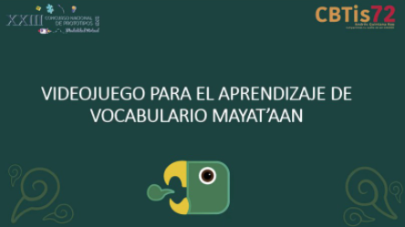 Que constó de un videojuego que tiene como objetivo enseñar el vocabulario de la lengua maya y al mismo contribuir a la preservación de la misma.