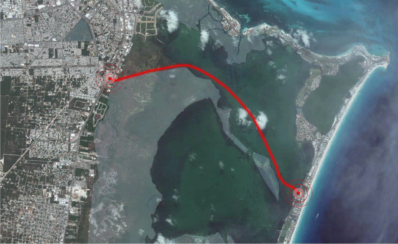 Ortiz Jasso explicó que el Puente es un proyecto de infraestructura que plantea una conexión de 8.6 kilómetros de longitud entre el centro urbano de Cancún y la Zona Hotelera, lo que permitirá reducir considerablemente los tiempos de traslado y los costos generalizados de viaje.
