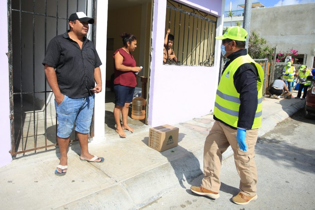 Cuidando los protocolos de sana distancia, las brigadas del gobierno del Estado y el municipio de Solidaridad salieron desde temprano a Puerto Aventuras para realizar la entrega del Apoyo Alimentarios a los habitantes de Puerto Maya, donde la edil de Solidaridad, exhortó a los habitantes a quedarse en casa. Asimismo, explicó que el Ayuntamiento mantiene en operaciones a sus áreas prioritarias y operativas para dar todo el respaldo a los ciudadanos.