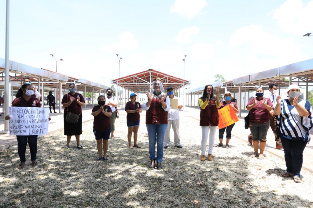 “Nuestra misión es transformar a México junto al presidente Andrés Manuel López Obrador”, fue el mensaje emitido por la alcaldesa durante esta entrega, quien estuvo acompañada por miembros del cabildo, el enlace de la delegación de Puerto Aventuras, Luis Eduardo Pérez Escamilla y del secretario de Ordenamiento Territorial Municipal y de Sustentabilidad, David Duarte Castilla, entre otros.