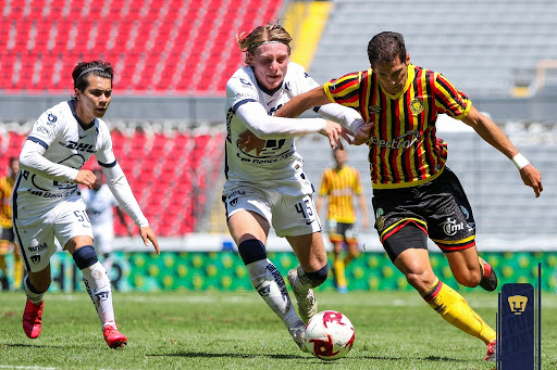 Pumas emparejó con gran acción individual de José Alcantara, quien tras conducir y evadir la marca, remató raso frente al arco a primer poste del arquero local (14′).