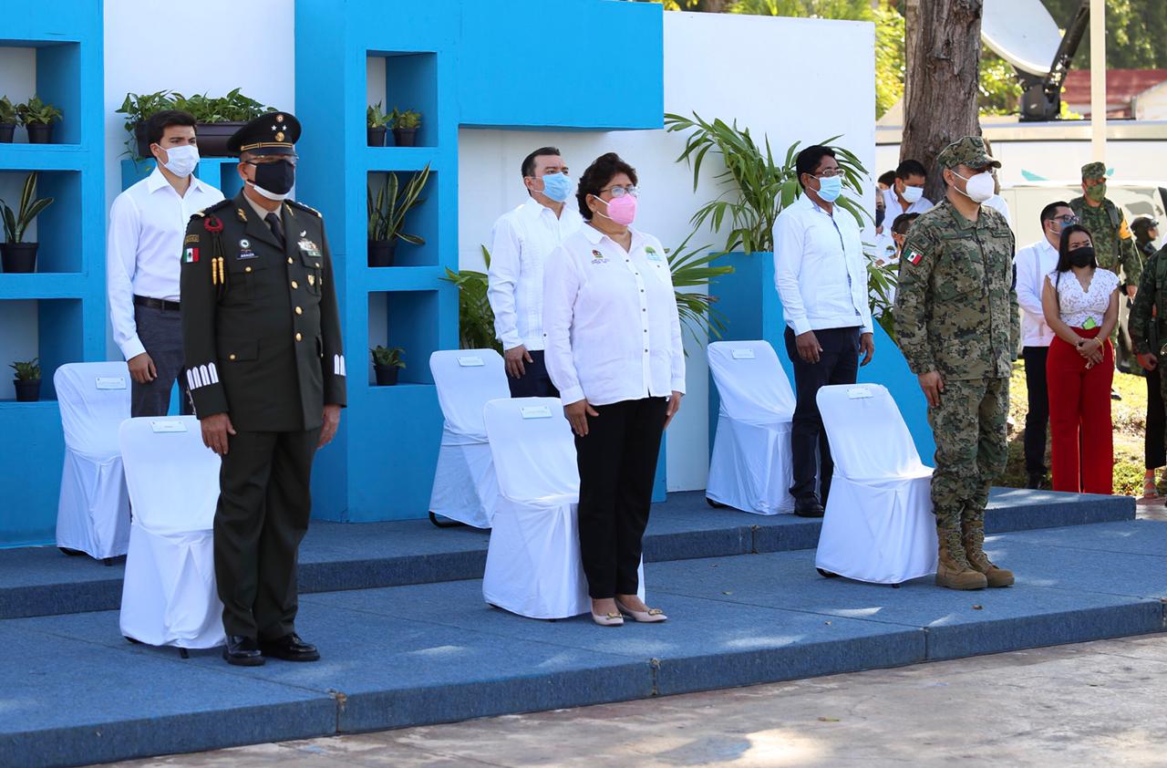 La titular de la SEFIPLAN estuvo acompañada por el comandante de la 34ª Zona Militar José Luis Vázquez Araiza, y el representante de la 11ª Zona Naval Félix de Jesús Martínez Tiburcio.