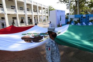 “La bandera es mucho más que un estandarte, es la proyección gráfica de lo que ostentamos ser como sociedad mexicana, es un símbolo que representa la libertad, la justicia y la igualdad que los mexicanos hemos logrado consolidar a lo largo de nuestra historia. Simboliza nuestra independencia, nuestro honor, nuestras instituciones y la integridad de nuestro territorio”, señaló el mayor.