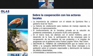 El funcionario estatal explicó que, Olas tiene como objetivo reducir la cantidad de residuos plásticos que ingresan a los océanos, a través del impulso y desarrollo de iniciativas que permitan a la industria una transición viable hacia la Economía Circular, la cual se basa en utilizar menos materia nueva, reducir los desechos y aprovecharlos. El proyecto se implementa en Filipinas, Egipto, Marruecos y en México (en el estado de Quintana Roo).