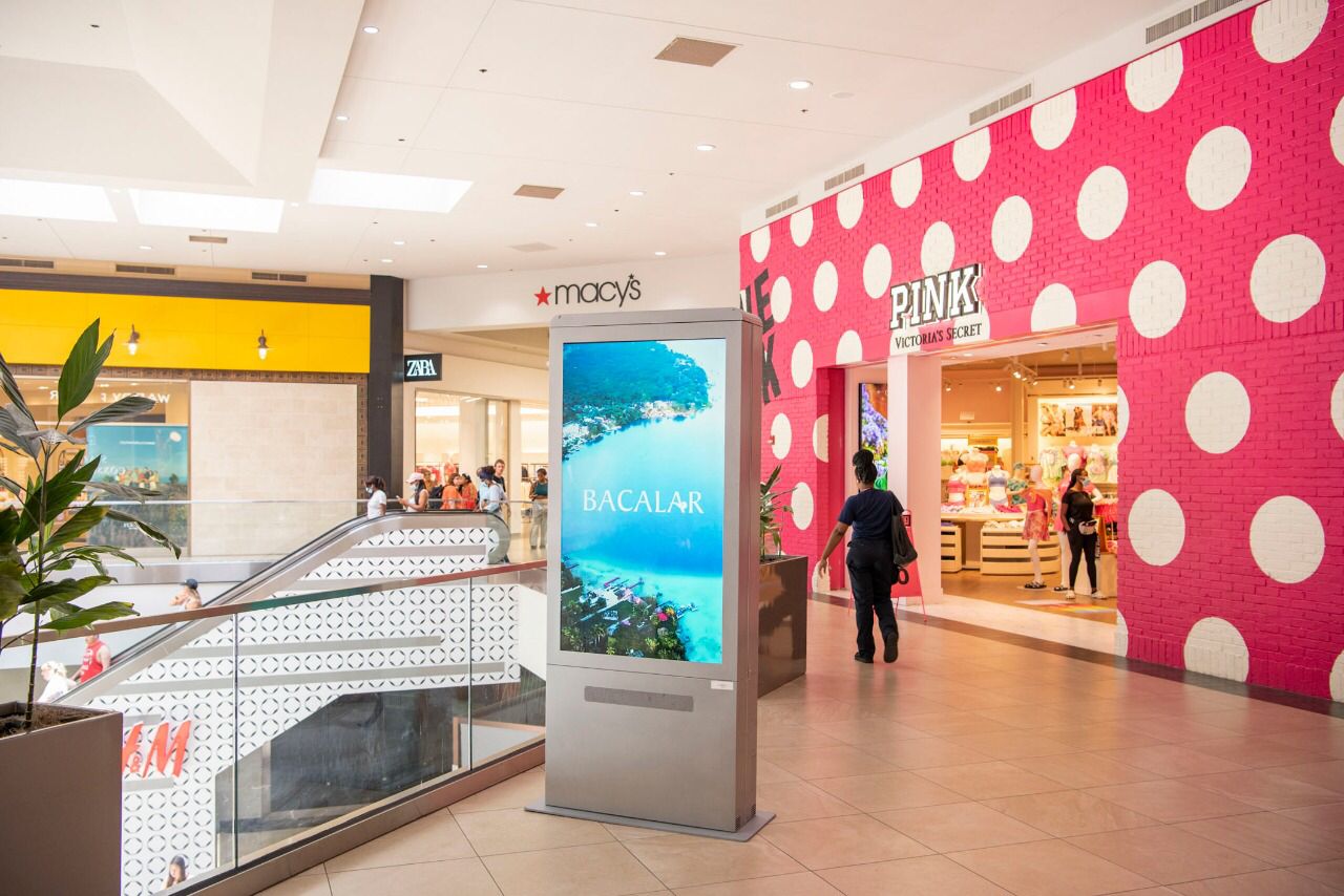 Estar en las plazas comerciales significa que el impacto publicitario se multiplica, no solo entre la gente que ahí vive sino también entre los turistas que llegan de diversas partes del mundo.