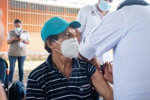 Mireya López Coral y Efraín Aguilar Cortez manifestaron: “estamos bien, muy contentos y agradecidos con las autoridades por habernos traído a nuestra comunidad la vacuna”.