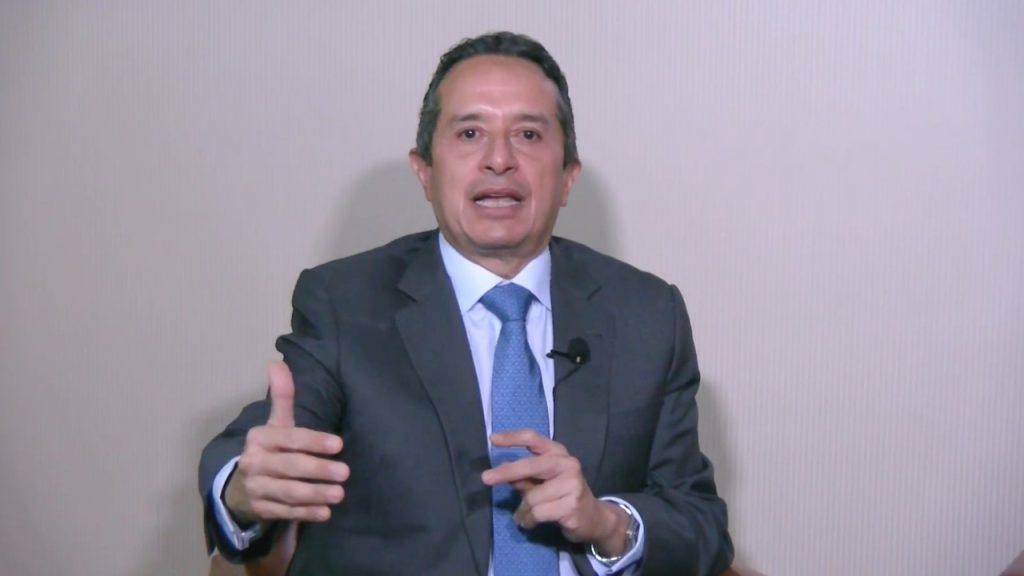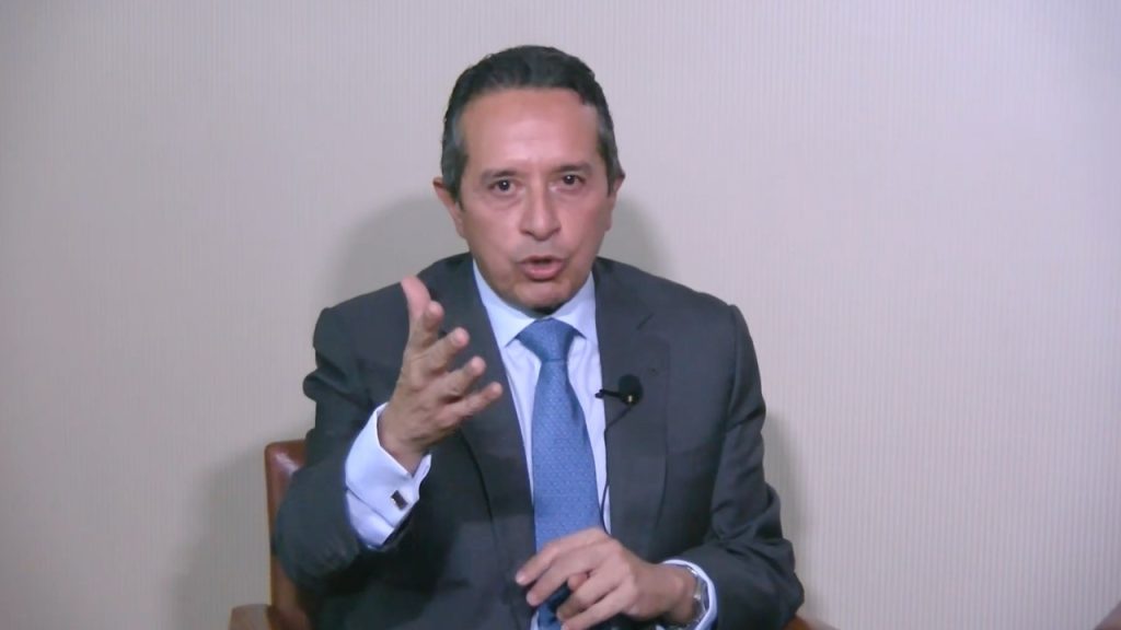 El gobernador de Quintana Roo participó en el programa Caminando Juntos, transmitido por el Sistema Quintanarroense de Comunicación Social y las redes de la Coordinación General de Comunicación, desde la Ciudad de México, donde participó en el encuentro de gobernadores que encabezó el embajador Ken Salazar y el secretario de Hacienda Rogelio Ramírez.