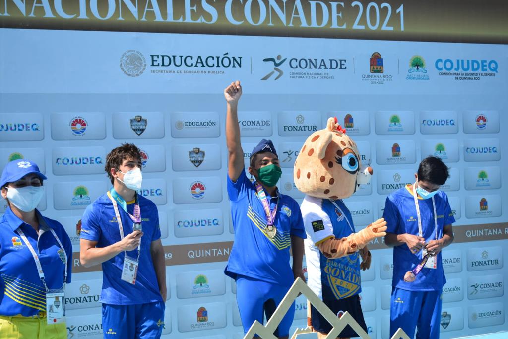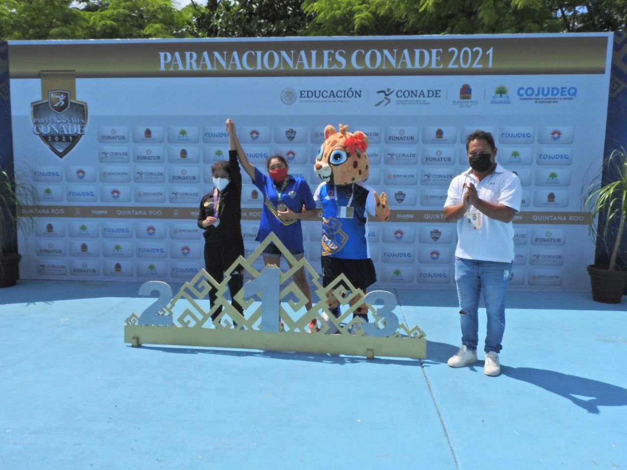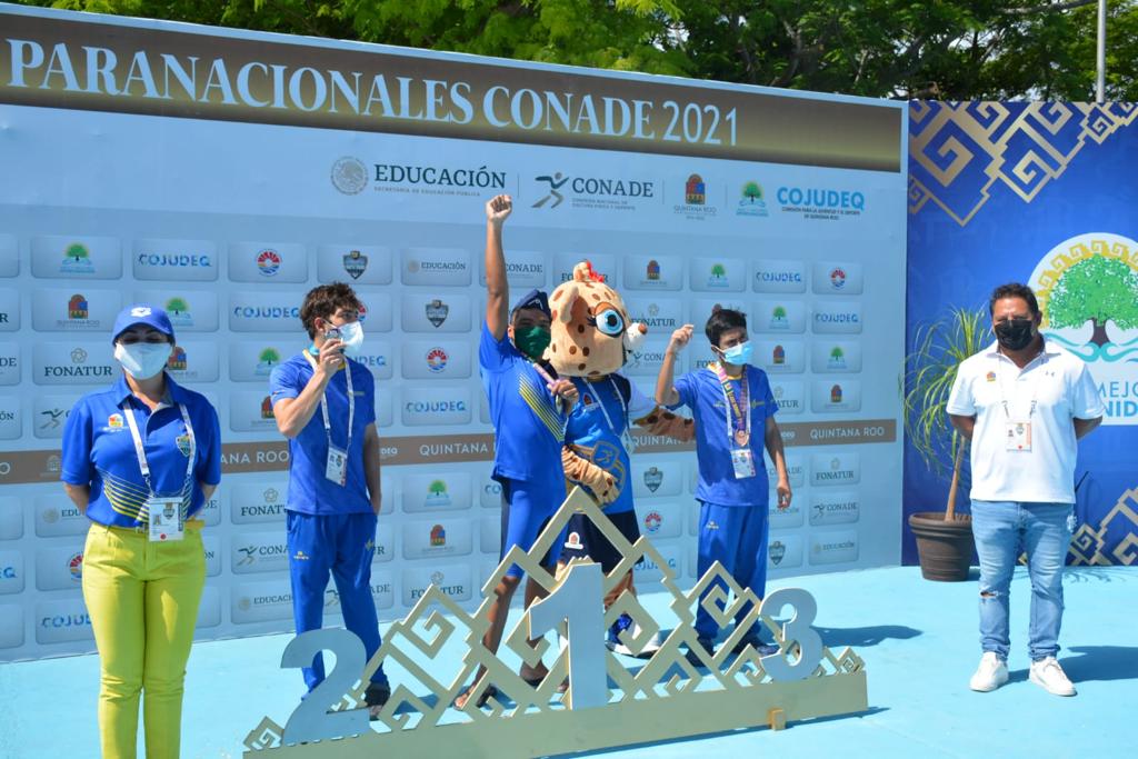 Cancún, Q. Roo, Martes 19 de Octubre de 2021, poderycrítica.- Quintana Roo se subió al podio de ganadores en la primera jornada de la disciplina de Paranatación de los Juegos Paranacionales CONADE 2021, con cinco medallas de oro y cuatro de plata y una de bronce dentro de la actividad en la Alberca Olímpica de Cancún.