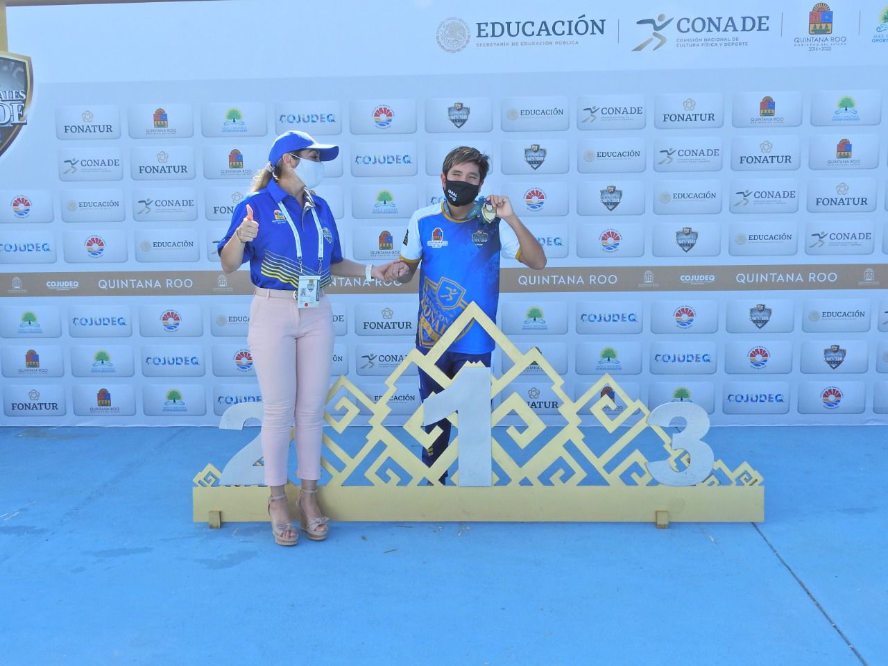 La cuarta medalla para Quintana Roo la consiguió el cancunense Andy Emmanuel Guerrero Sánchez, quien se agencia la plata en los 400 metros Libres y finalizó la jornada del primer día con la presea de oro en 100 metros Dorso.