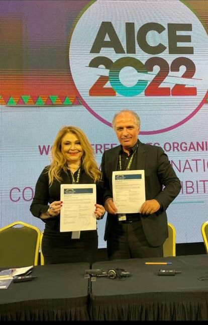 En el marco del Congreso Mundial de Zonas Libres “AICE” 2022, que se lleva a cabo en este país, la Mtra. Rosa Elena Lozano Vázquez, secretaria de Desarrollo Económico de Quintana Roo, participó junto al Dr. Samir Hamrouni, CEO de la Organización Mundial de Zonas Libres (WFZO), en el acto protocolario de ingreso a este organismo.