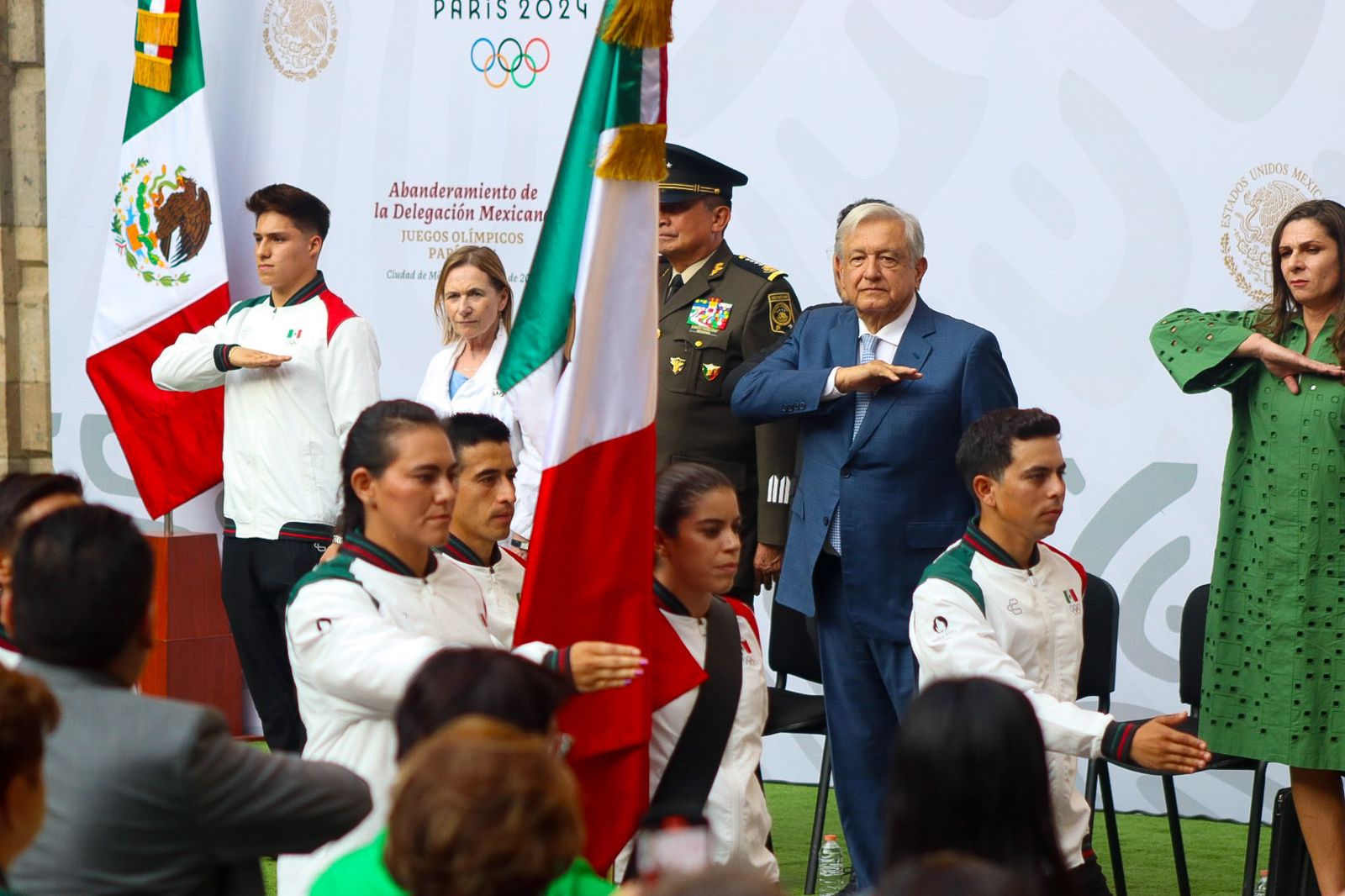 PODER Y CRÍTICA | REDACCIÓN | En una ceremonia solemne encabezada por el presidente de México, Andrés Manuel López Obrador y la titular de la Comisión Nacional de Cultura Física y Deportes (CONADE), Ana Gabriela Guevara, se realizó el abanderamiento de la Delegación Mexicana para los Juegos Olímpicos Paris 2024, misma que se tuvo lugar en el patio central del Palacio Nacional en la Ciudad de México.