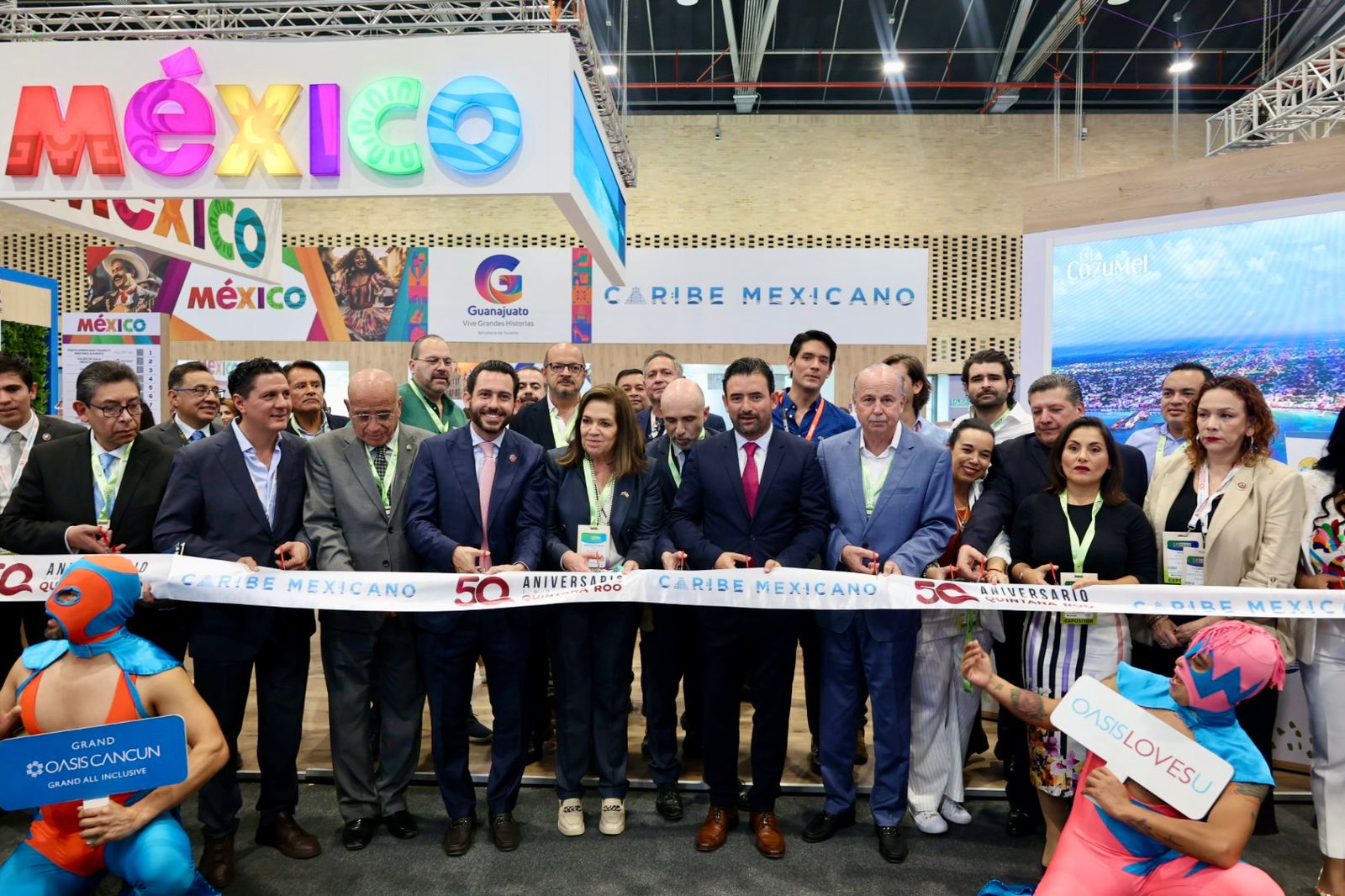 Durante la inauguración de la ANATO 2024, la delegación del Caribe Mexicano encabezada por el secretario de Turismo en Quintana Roo, Bernardo Cueto Riestra, quien asiste en representación de la gobernadora Mara Lezama Espinosa, así como el director del Consejo de Promoción Turística de Quintana Roo, Andrés Martínez; la Excelentísima Martha Patricia Ruíz Anchondo Embajadora de México en Colombia; el director general de Promoción de la Secretaría de Turismo, Emmanuel Rey, presidente de las Asociaciones de Hoteles del estado, inauguraron el pabellón del Caribe Mexicano en la Vitrina Turística.
